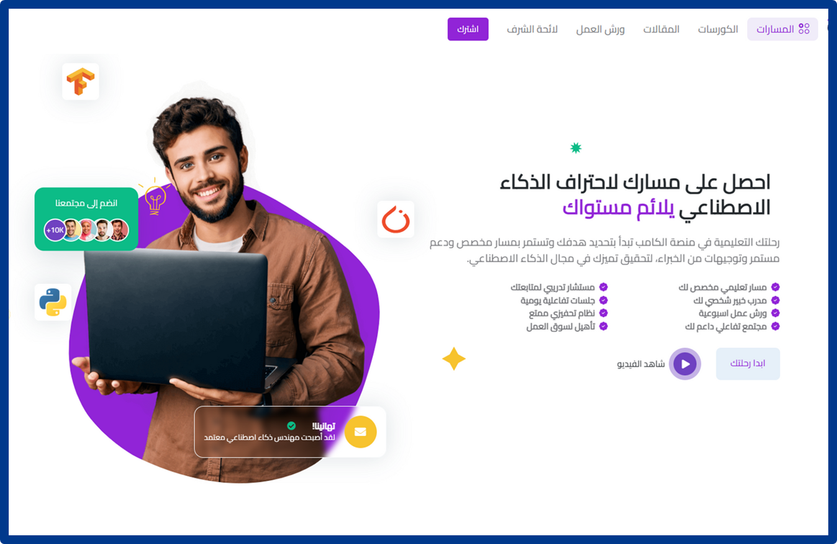 A personalized, Arabicized e-learning hub specializing in artificial intelligence.