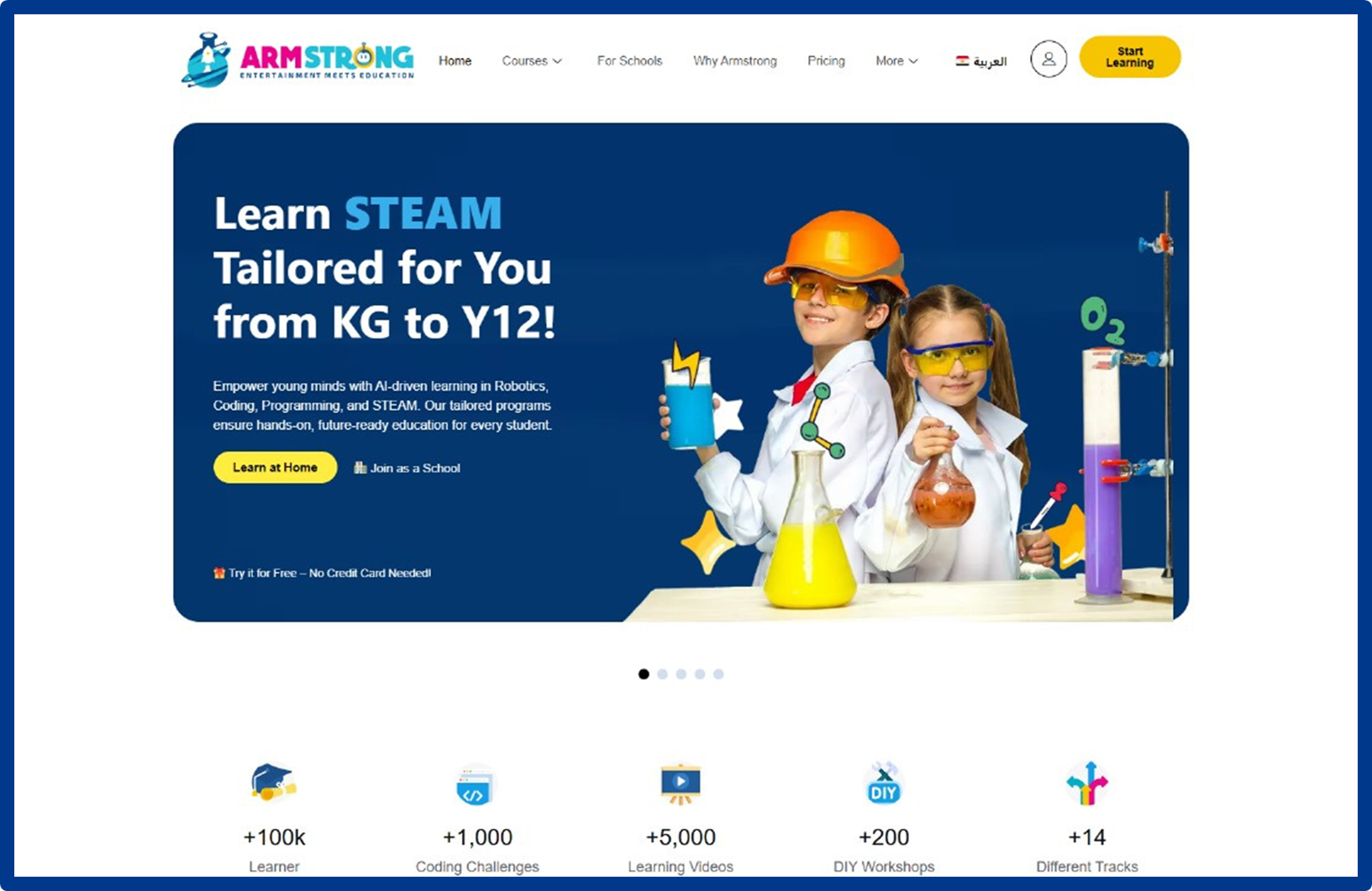 Armstrong is redefining education by making AI-driven, hands-on learning accessible for students, schools, and educators. Our mission is to equip the next generation with future-ready skills in STEAM, AI, Robotics, and Coding through personalized learning, interactive experiences, and cutting-edge technology