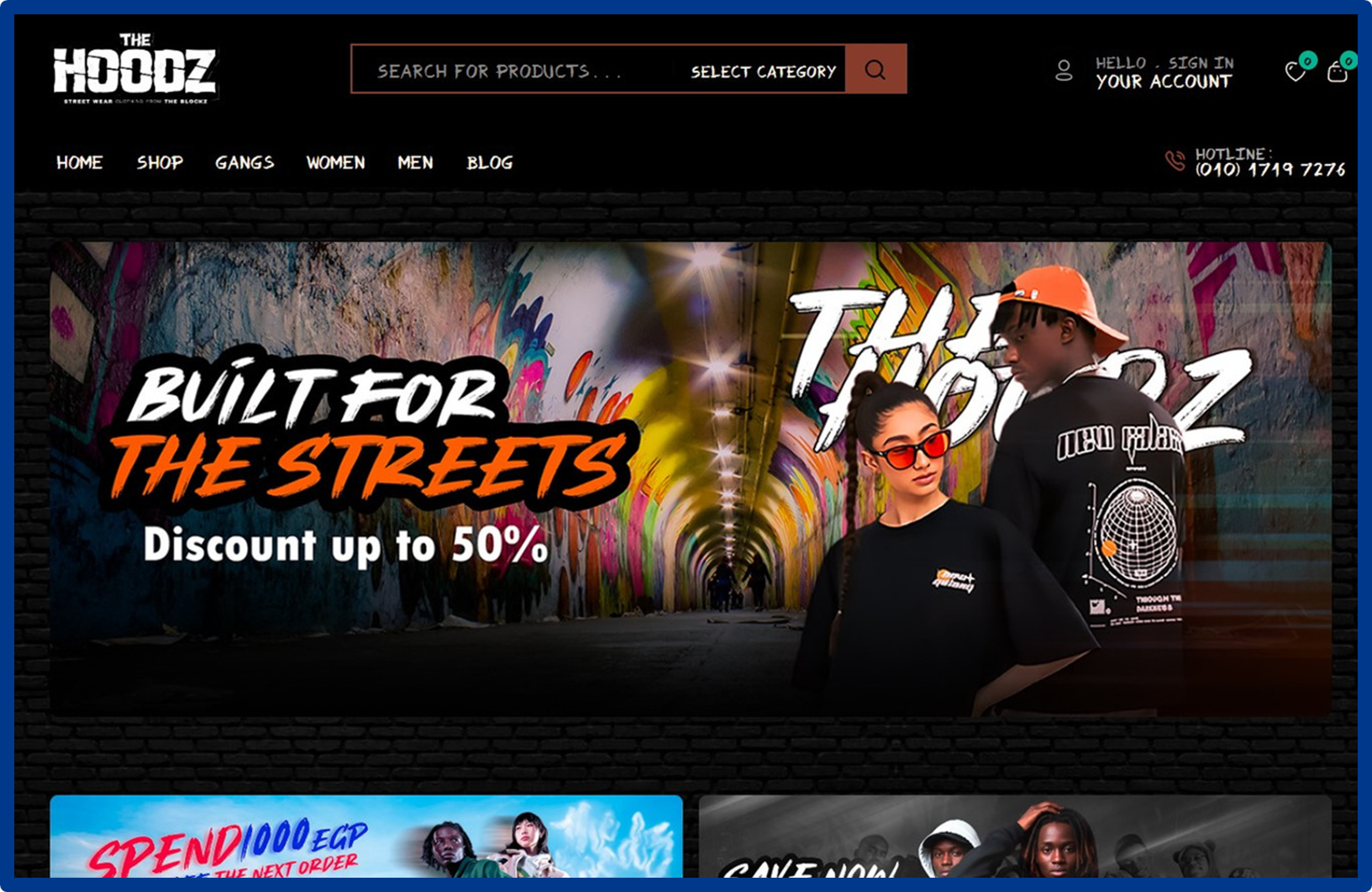 The Hoodz is a Cairo based streetwear marketplace that connects local brands and shoppers, uniting a curated ecommerce storefront, bilingual Arabic and English shopping, and social community touchpoints. It offers vendor onboarding for emerging labels through a simple join flow, showcases seasonal drops across men and women categories, and prices in EGP for a smooth local checkout