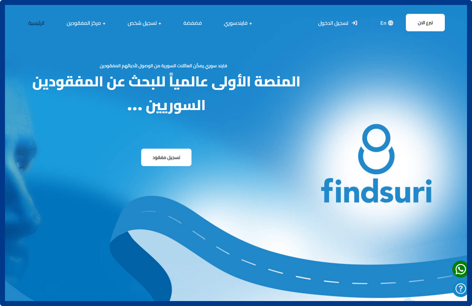 Findsuri is a Canada-based non-profit platform that helps families locate missing Syrians, uniting a secure online community with AI-powered search and easy reporting tools for missing or found persons. It offers a centralized Missing Center, privacy-first case registration, and outreach across Syria and the diaspora, with growing collaborations in the humanitarian ecosystem.