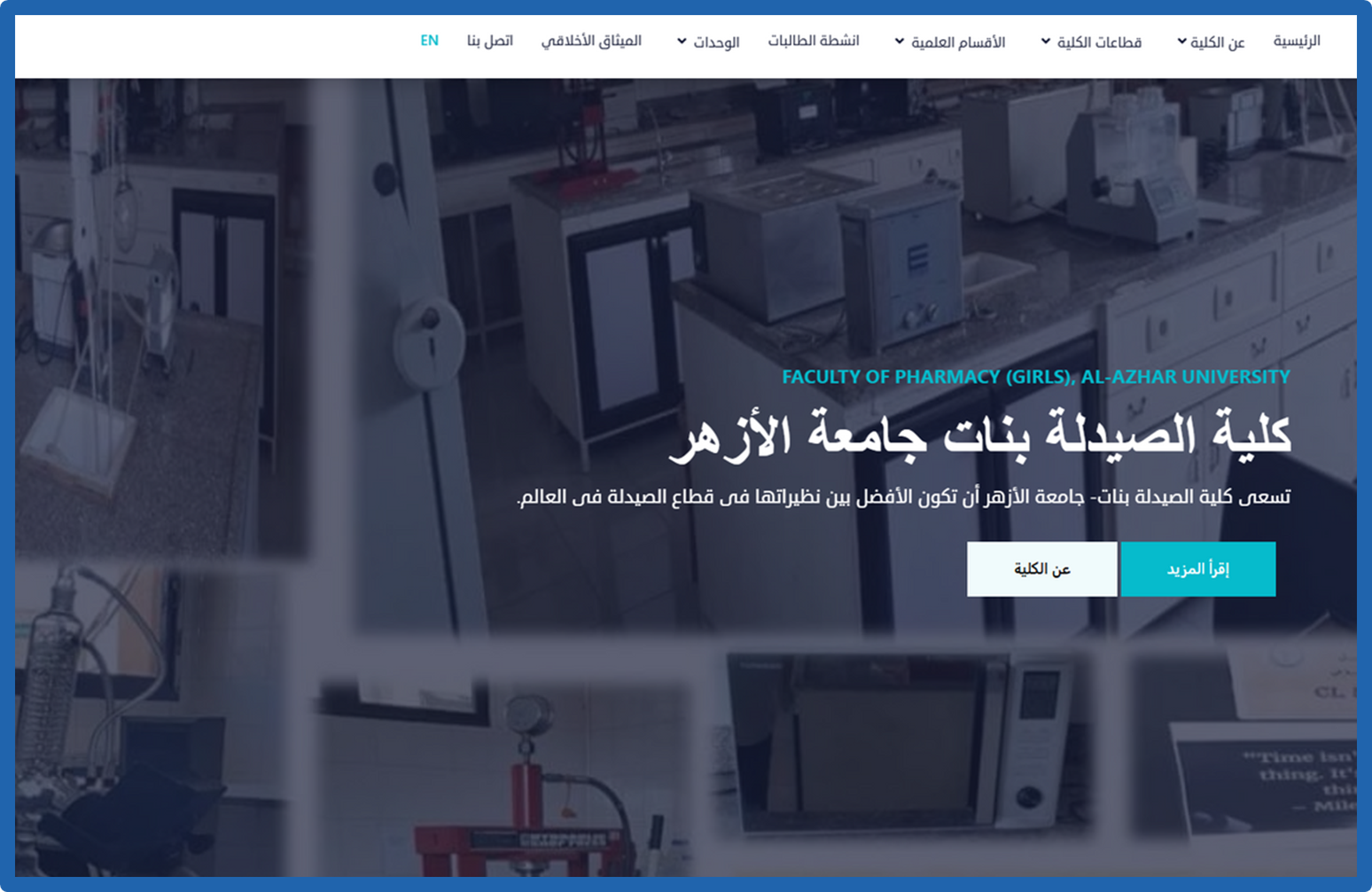Faculty of Pharmacy for Girls at Al Azhar University is a Cairo-based pharmacy faculty that delivers Pharma and Clinical Pharma programs, pairs rigorous scientific research with community service, and develops women pharmacists for practice and industry.
