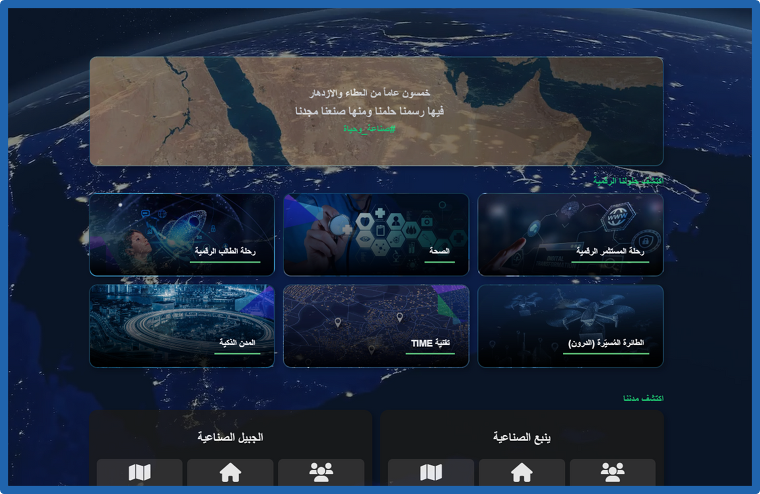 The Royal Commission for Jubail & Yanbu Interactive map showcases the organization’s achievements and ongoing projects in fields such as the digital economy, healthcare, and sustainable energy. It serves as an information hub for the region’s progress and future vision.