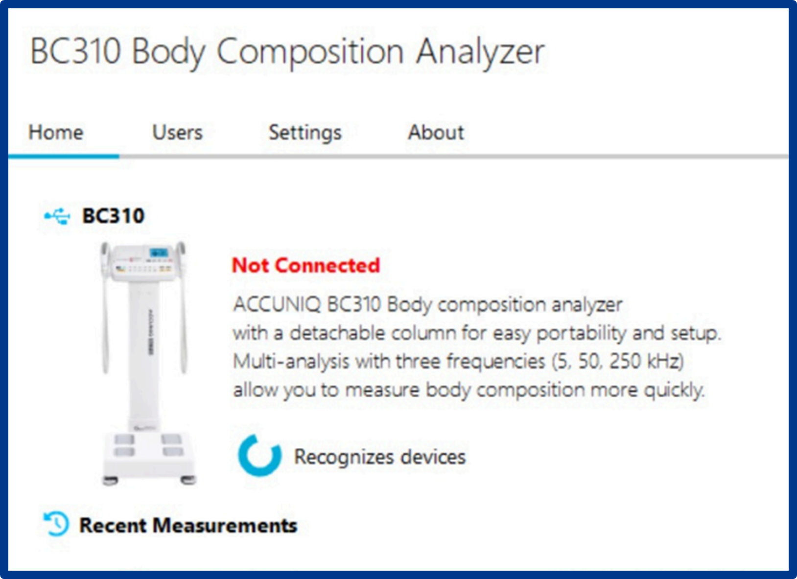 The systems showcase a Body Composition Analyzer system, featuring a user-friendly interface for detailed body metrics analysis. It includes comprehensive body composition data, recent measurements, and device connection status, aimed at providing precise and quick body assessments.